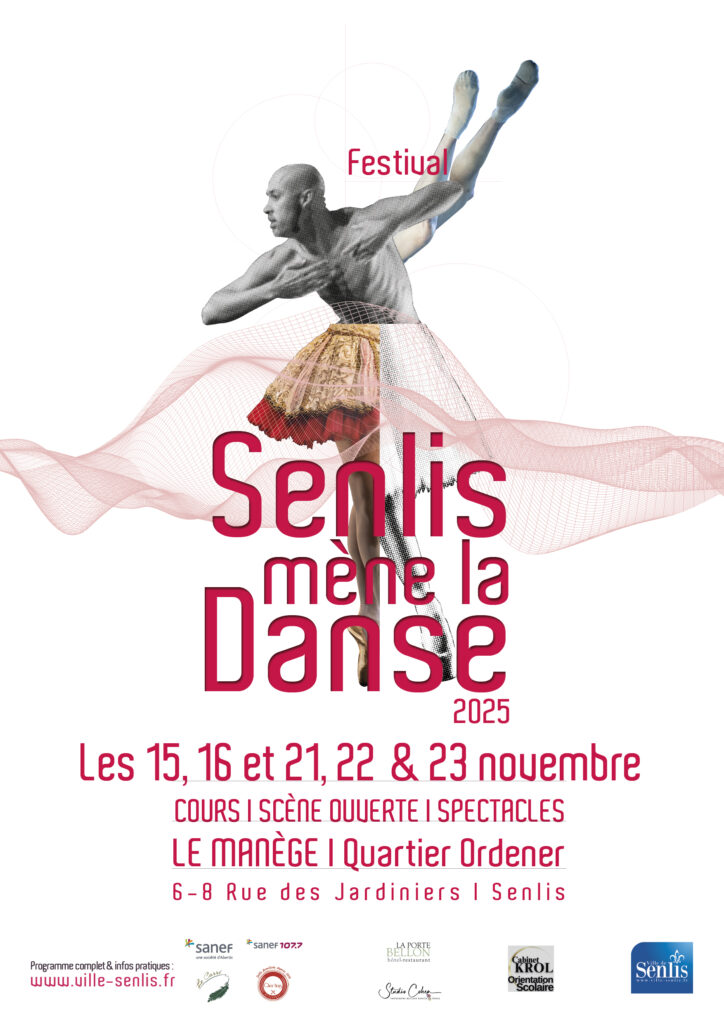 Le conservatoire et la ville de Senlis organisent l’édition 2025 du festival « SENLIS mène la danse » les 15 et 16 novembre 2025 pour les stages de danse et les 21-22-23 pour les spectacles amateurs et professionnels.